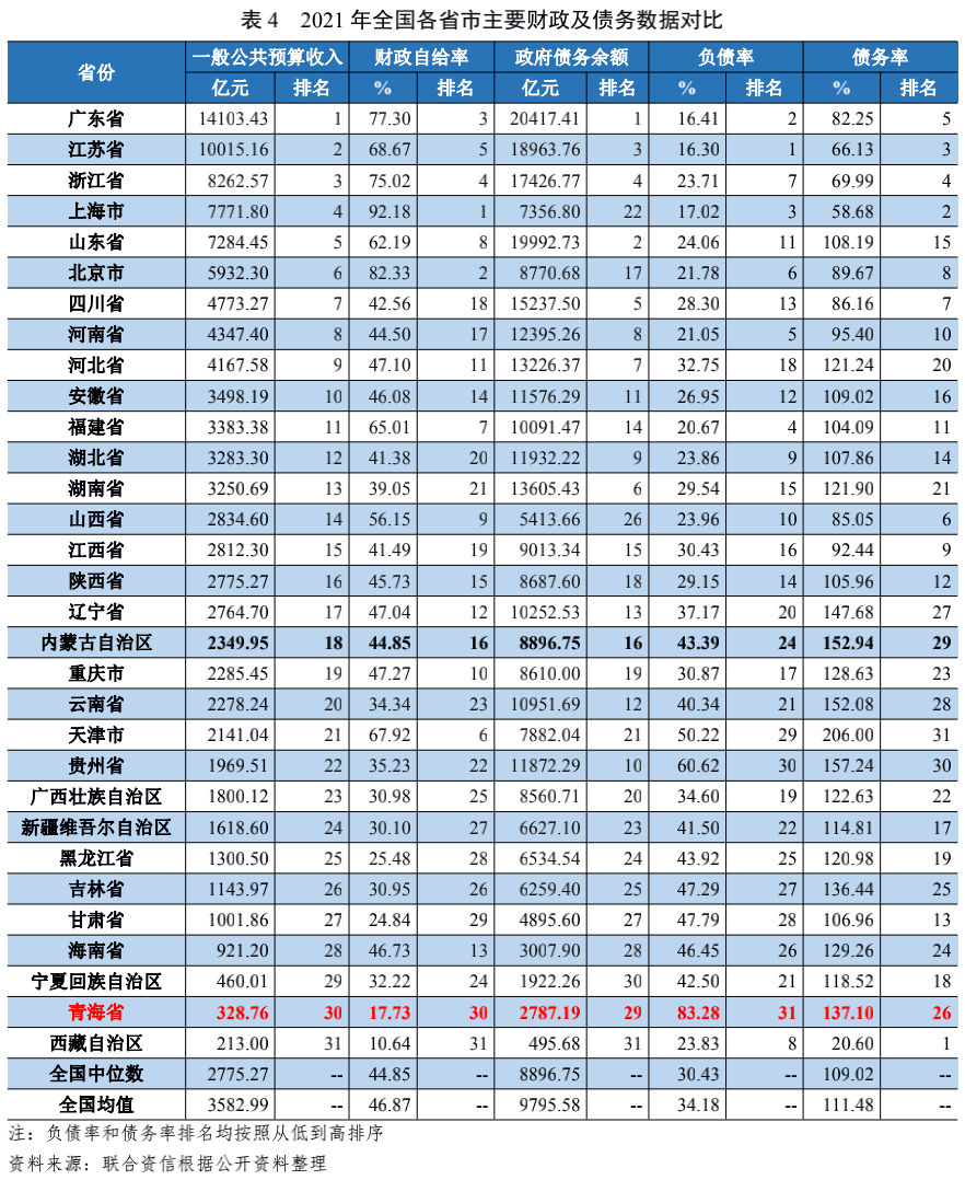 青海省位于中国西部,经济发展相对滞后。2019-2021年,青海省经济持续增长,但增速有所放缓,整体产业结构保持稳定。2021年,青海省GDP总量居全国第30位,增速低于全国增速,规模以上工业增加值增速有所提高,固定资产投资增速同比下降。2022年上半年,青海省整体经济增速仍维持低位。2019-2021年,青海省一般公共预算收入及增速持续增长。2021年,青海省一般公共预算收入全国排名第30位,其中税收占比较上年同期有所下降,财政自给能力弱,财政收支平衡主要依赖于上级补助收入,政府性基金收入对土地出让收入依赖程度高。2019-2021年,青海省政府债务余额规模持续增长,政府负债率和债务率均在全国处于较高水平。