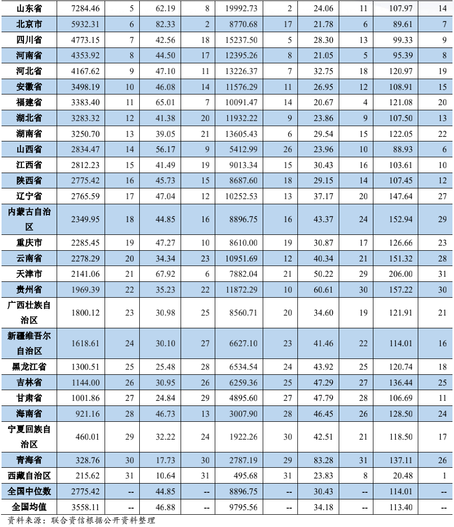 江苏省地理位置优越,自然资源丰富,交通体系完善;人口保持净流入,城镇化水平较高;产业结构完备,上市公司数量众多,经济总量稳居全国第二位,人均GDP处于全国省域首位。2021年,江苏省主要经济指标同比明显改善;但受疫情影响,2022年前三季度经济增速有所放缓。