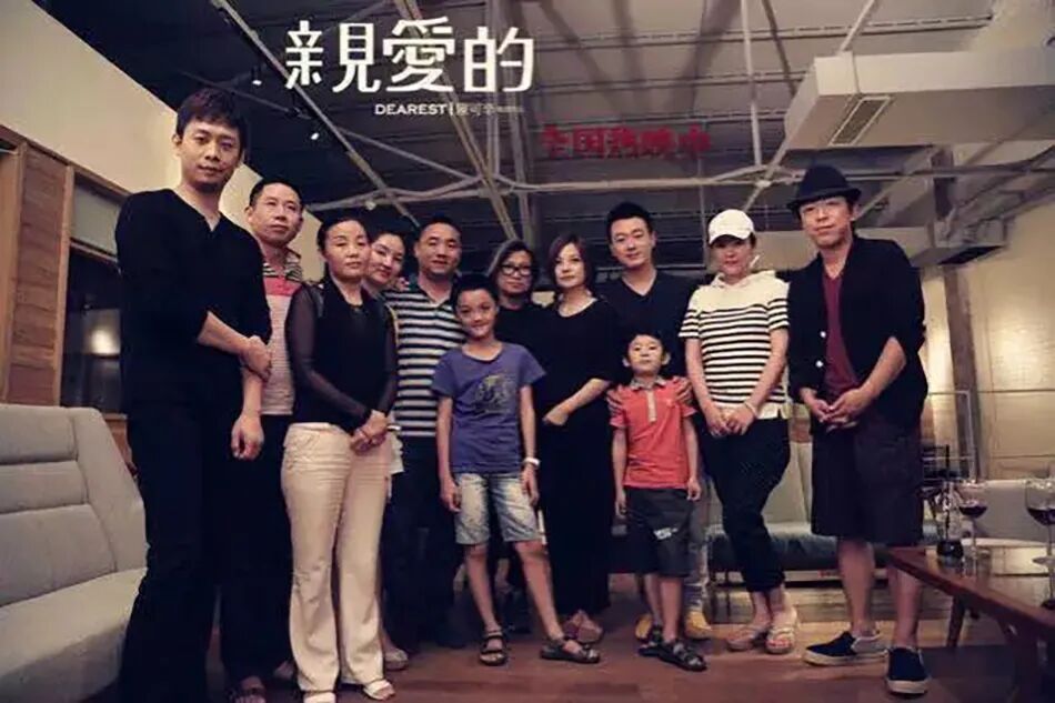 彭高峰一家人和《亲爱的》剧组主创合影。