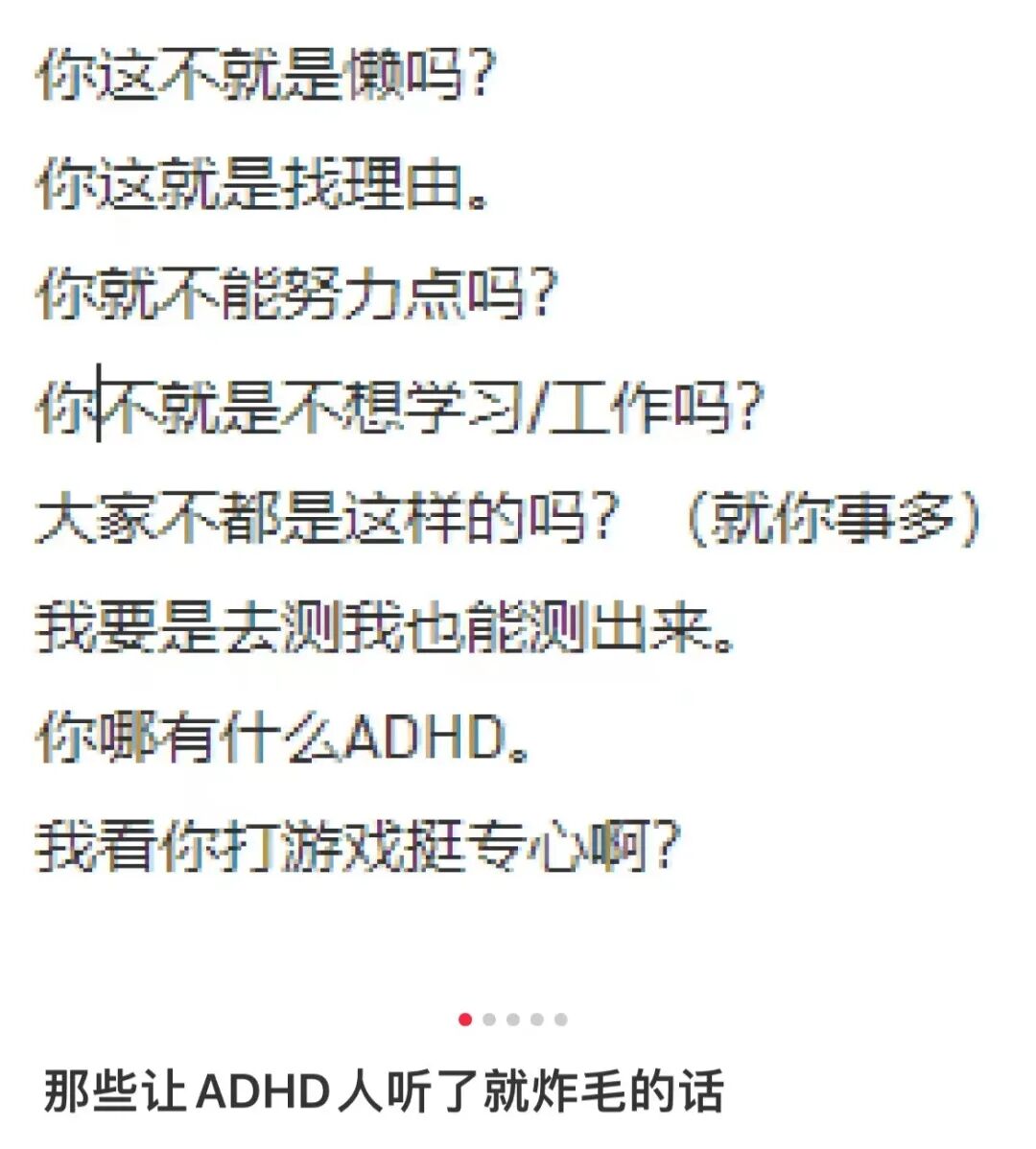 “人人都是‘ADHD’”的印象一旦形成,那真“ADHD”患者就成为了“意志力不坚定、懒”的代名词,这无疑是对正在经受痛苦的他们的又一次打击。