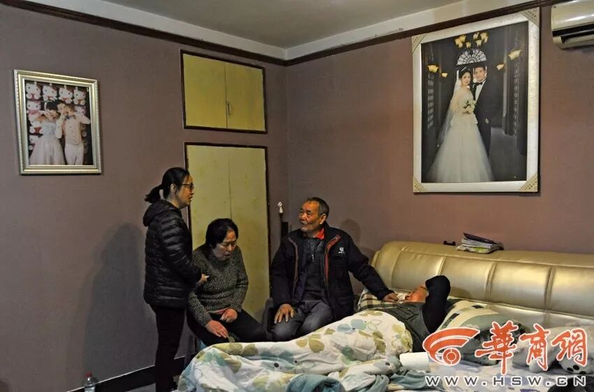 救人保安李国武的父母得知了小儿子救人时遇难,老父亲躺在病床上血压高达190,老母亲在女儿的搀扶下不时哭泣。来源:华商网-华商报