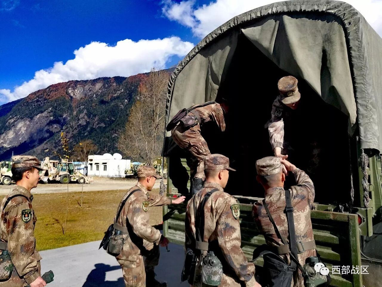 西藏军区驻米林某边防团抢险救灾分队到达震中地区