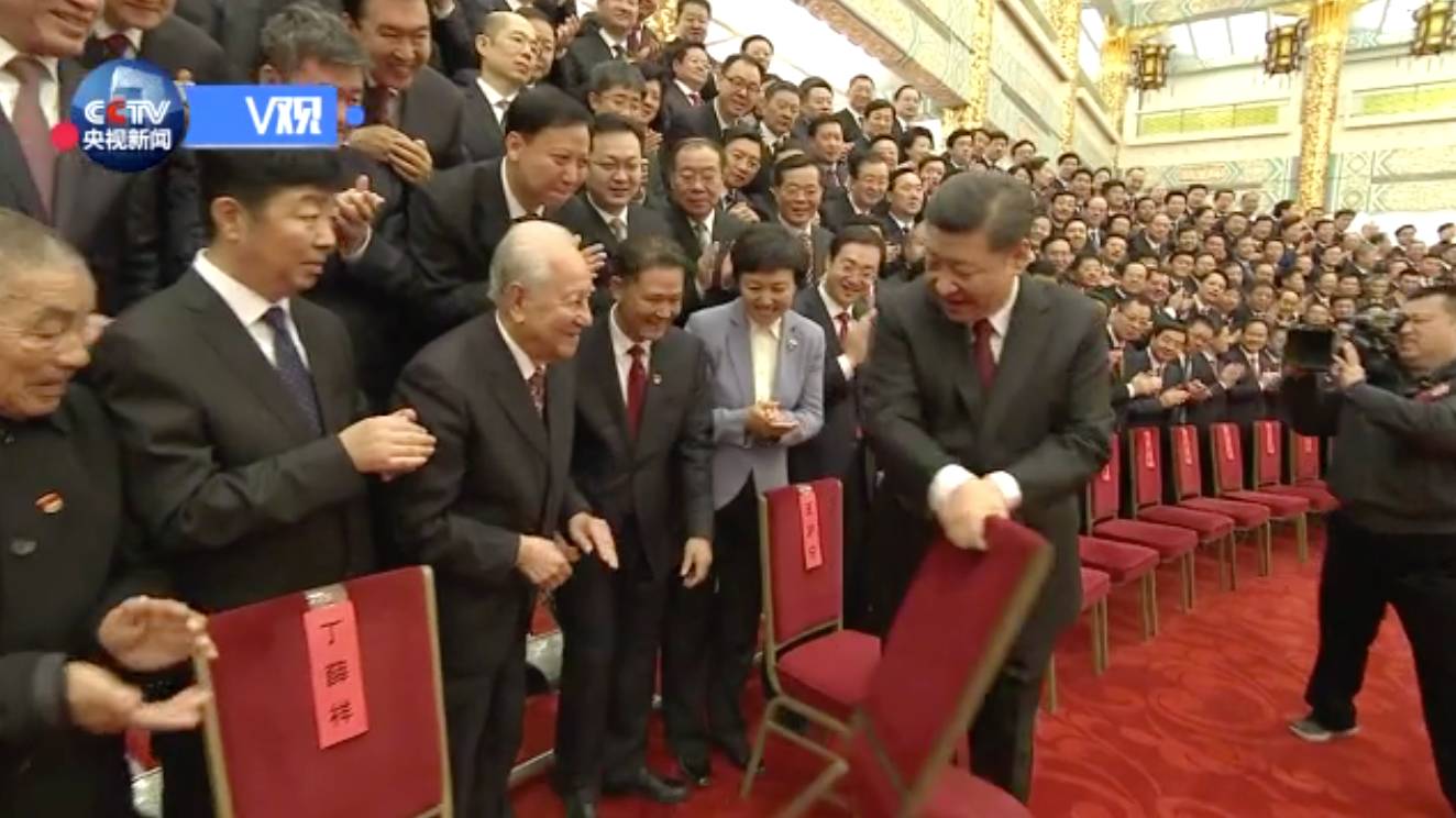 总书记就喊我们两个人,坐到前面去,挨着他坐,又让工作人员把凳子递给我们坐……总书记对我们老党员关心,我们心里比较激动。