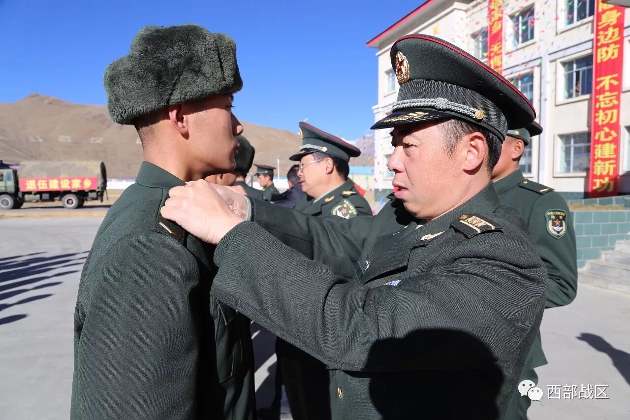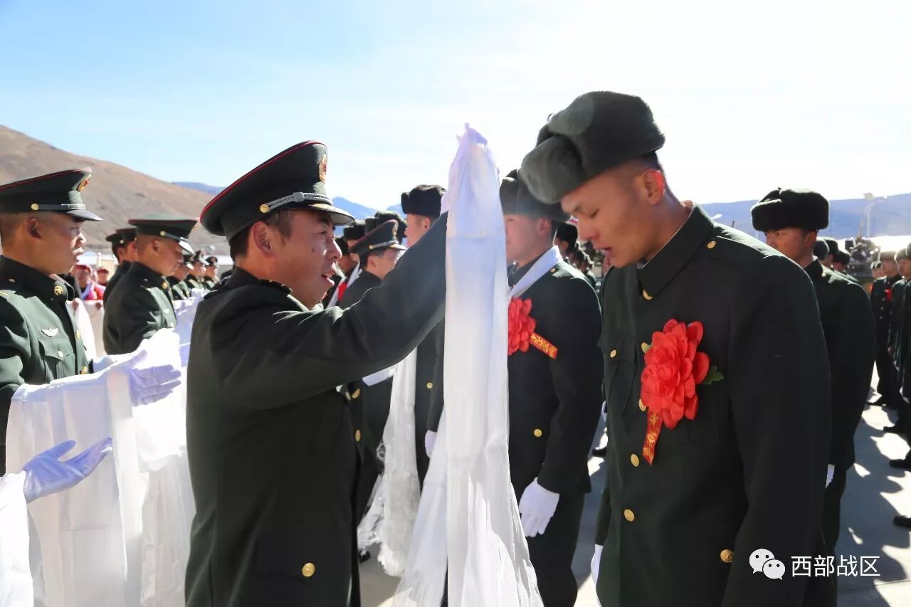 历一次离别、献一条哈达、道一声珍重、送一句祝福。在这一场迟到的拥有特殊荣誉的仪式上,当军衔、领花、肩章被卸下的那一刻,这些曾在这片雪域边关戍守少则2年、多则16年的铁血汉子再也控制不住内心的那份柔情,泪水像决堤的洪水齐刷刷地往外流,场面催人泪下。