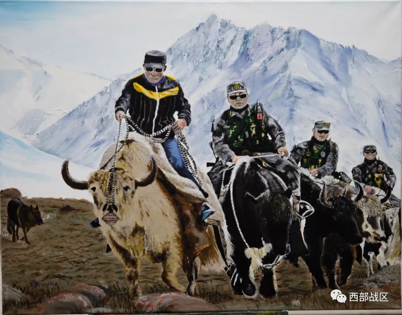 这些年来,油画一直是王茂坚持的爱好。油画中,人物像属他最擅长。为了真实反映一代代戍边官兵在传承“热爱边防、艰苦奋斗、顽强拼搏、无私奉献”喀喇昆仑精神中践行热爱南疆、奉献南疆、扎根南疆的感人故事。王茂始终把画笔聚焦边防官兵,创作了一幅幅活灵活现、逼真形象、栩栩生辉的油画作品,深受官兵喜爱,同时也给他们送去了“精神食粮”,以边防为题材的油画成为官兵乐守边防的不竭动力。
