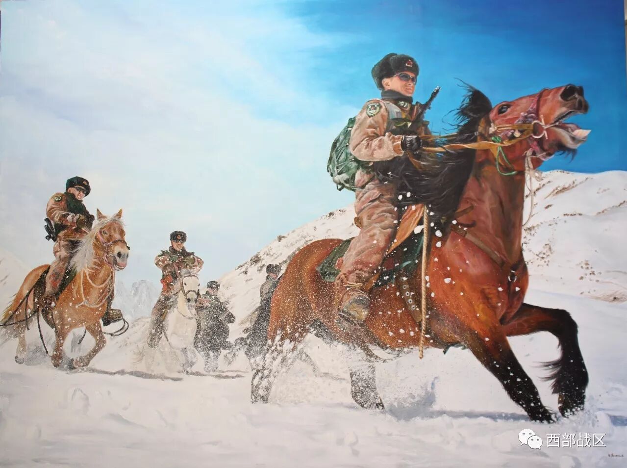 油画有思想、有内涵、有特色、有质量,一直是王茂作品的显著特点。2015年11月,他创作的油画作品《巡逻路上》,以边防官兵在海拔5000多米高原踏雪巡逻为背景创作而成,入展新疆军区“传承红色基因·铸牢昆仑军魂”书法美术摄影作品展,受到了军区首长的高度赞扬。