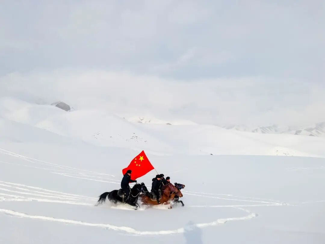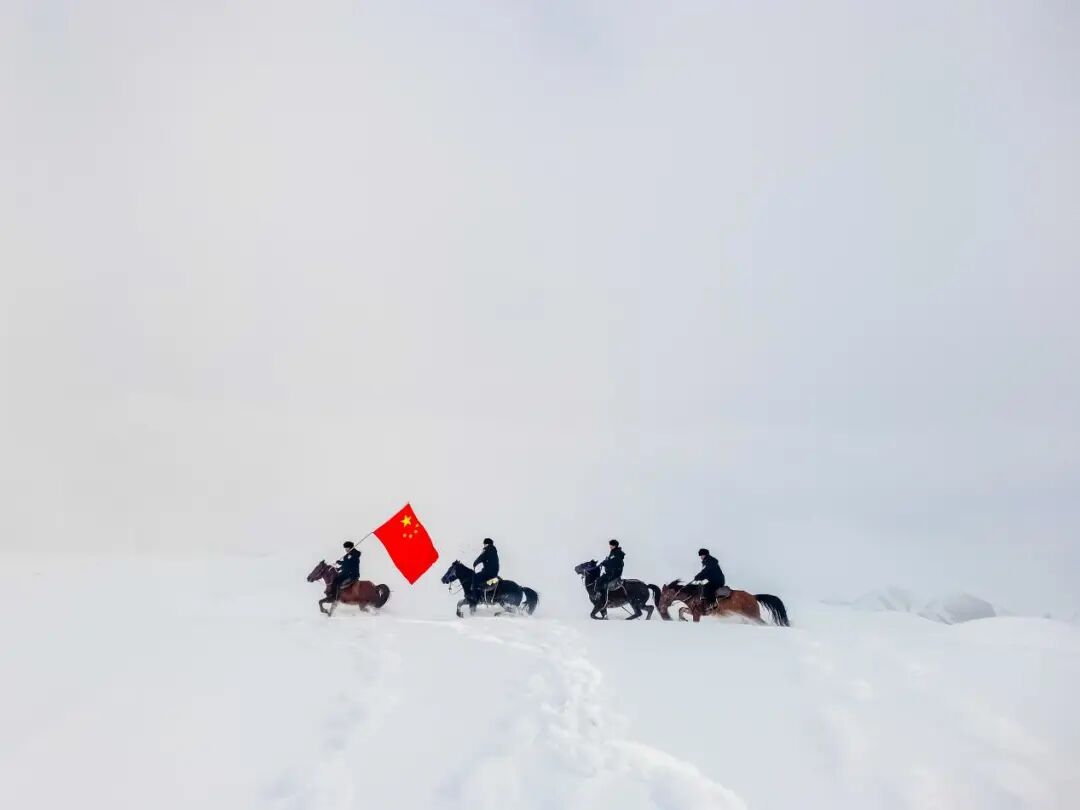 2023年1月1日,驻守在新疆伊犁边境管理支队小麻扎边境派出所旱田山边境警务站的民警组织成立了“巡逻分队”,采取马巡与步巡相结合的方式,高举国旗,翻雪山、过陡坡、不畏严寒、踏着深雪,在海拔2800多米的边境线上开展巡逻踏查,确保祖国边境的安全稳定。虽然路途艰难,但新一年的第一次巡逻,让民警、辅警们觉得格外有力量。