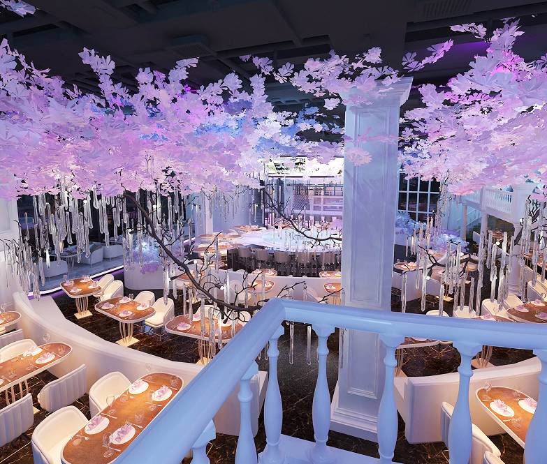 幕布营造的星空与樱花像穿行如油画一般的浪漫色彩这是一个能听到春天的地方;这是一个能感受春风拂面,品尝春天味道的地方;这里生机勃发、春意盎然;这里甜蜜由口及心悄然萌动;这里笑脸与花朵合欢,人面桃花、满园春色!所有回忆都从春之声带来的美妙倾慕开始。