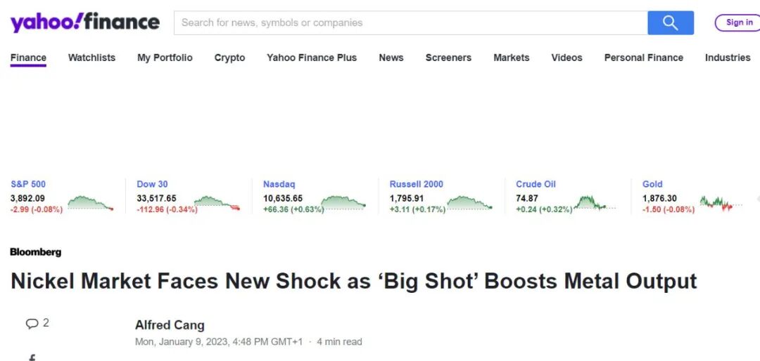雅虎财经指出,如果青山的计划成功实现,加上其国内同行也有类似行动,2023年中国的精炼镍产量可能较2022年的约18万吨翻一倍,使全球的精炼镍产量增加约五分之一。
