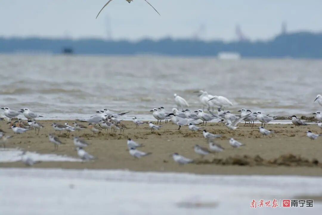 据悉,广西是水鸟稳定的越冬地,丰盛肥美的滩涂以及良好的生态环境为迁徙鸟类提供了丰富的食物,成为候鸟歇脚地和“加油站”。