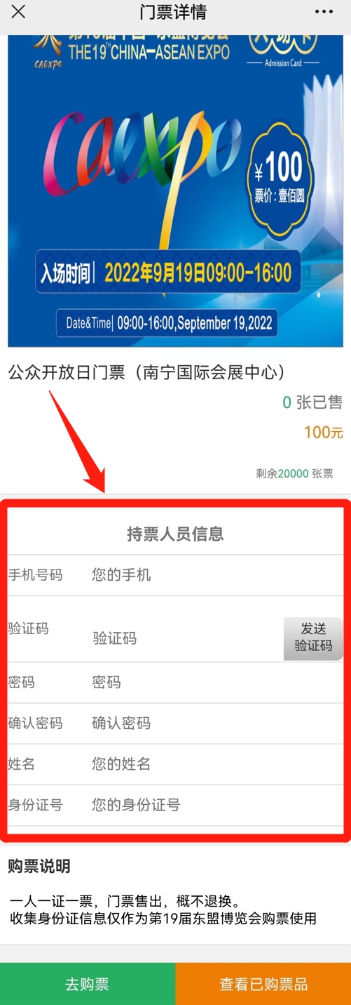 购票成功的观众在南宁国际会展中心各安检站门禁口入场时,须携带本人有效身份证原件、电子票二维码,经体温检测合格(<37.3℃),出示48小时内有效的新冠病毒核酸检测阴性证明、绿色广西健康码和行程卡,核验本人有效身份证及电子票,通过安检后全程正确佩戴医用防护口罩入场。门票售出,概不退换。购票成功后会将购票信息以短信的方式发送至购票时填写的手机上,请注意查收!