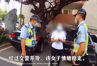 据了解,视频拍摄时间为9月27日,在民族园湖路口,一辆小车停在主车道中间,执勤的两名交警上前查看情况,此时车内传来女士的哭泣声。