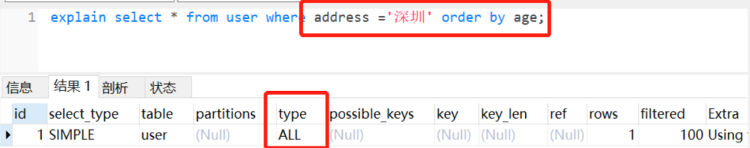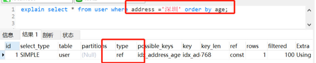 -- 添加索引alter table user add index idx_address_age (address,age)
