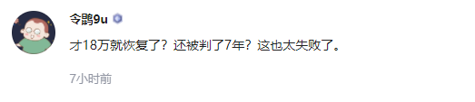 对于此事,网友评论:“才18万就恢复了?还被判了7年?这也太失败了。”