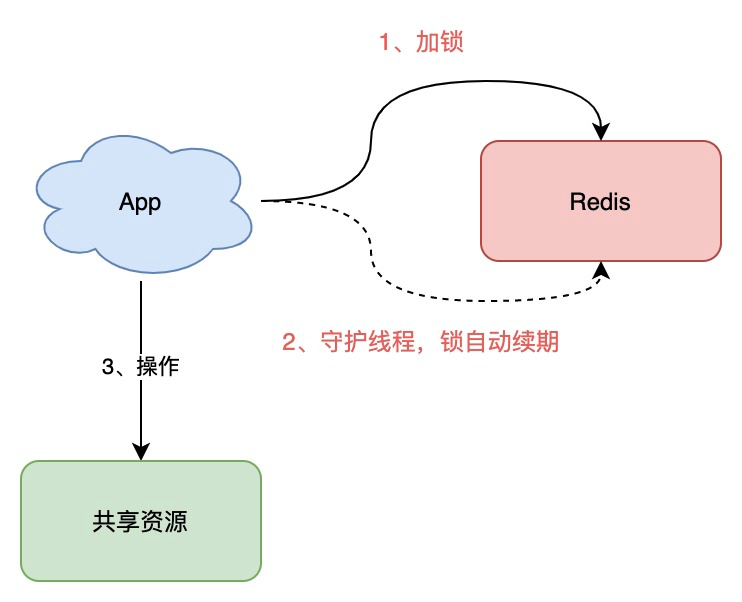 是否可以设计这样的方案:加锁时,先设置一个过期时间,然后我们开启一个「守护线程」,定时去检测这个锁的失效时间,如果锁快要过期了,操作共享资源还未完成,那么就自动对锁进行「续期」,重新设置过期时间。