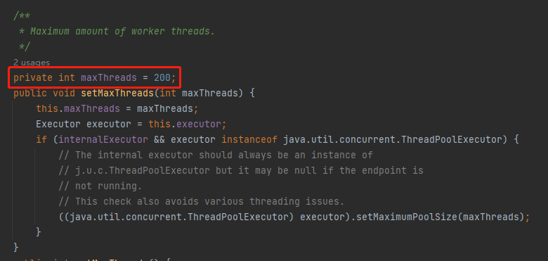 因为 tomcat 线程池的最大线程数默认就是 200: