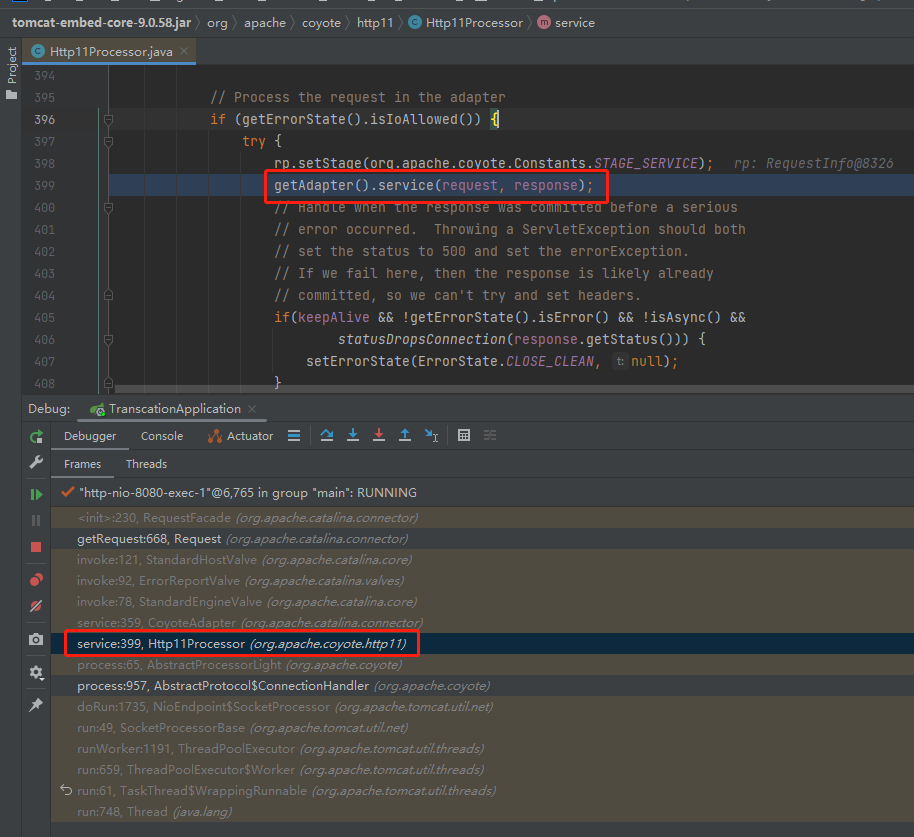 虽然我还没有发起请求,但是我知道,一定是 Http11Processor@7ba33829 来进行处理。