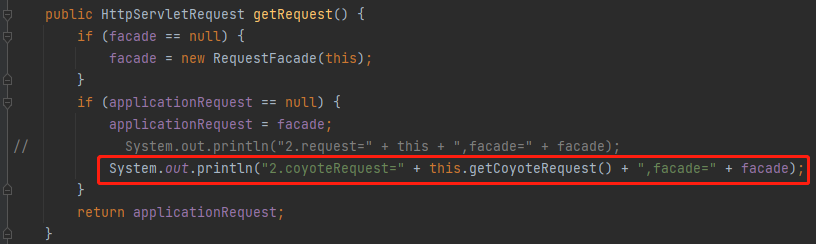 第二个是把 facade 赋值给 applicationRequest 对象,接着返回 applicationRequest 对象。