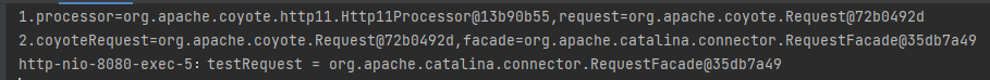 3.http-nio-8080-exec-1:testRequest = org.apache.catalina.connector.RequestFacade@6dd86e2f