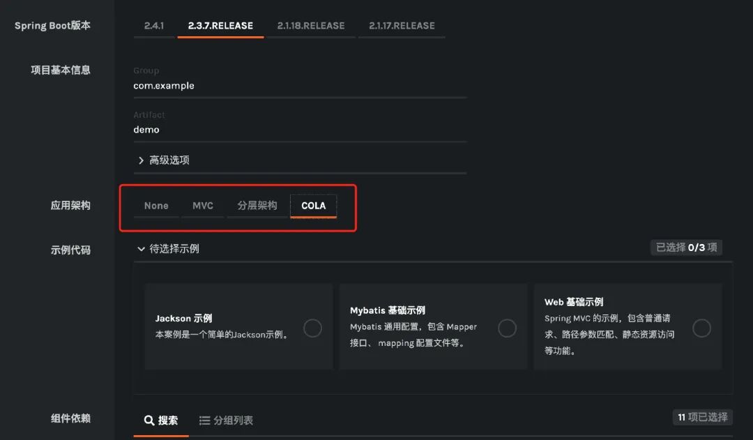 在COLA 4.0,也就是目前最新的版本中,作者将COLA拆分为COLA架构(Archetype)和COLA组件(Components)两个部分: