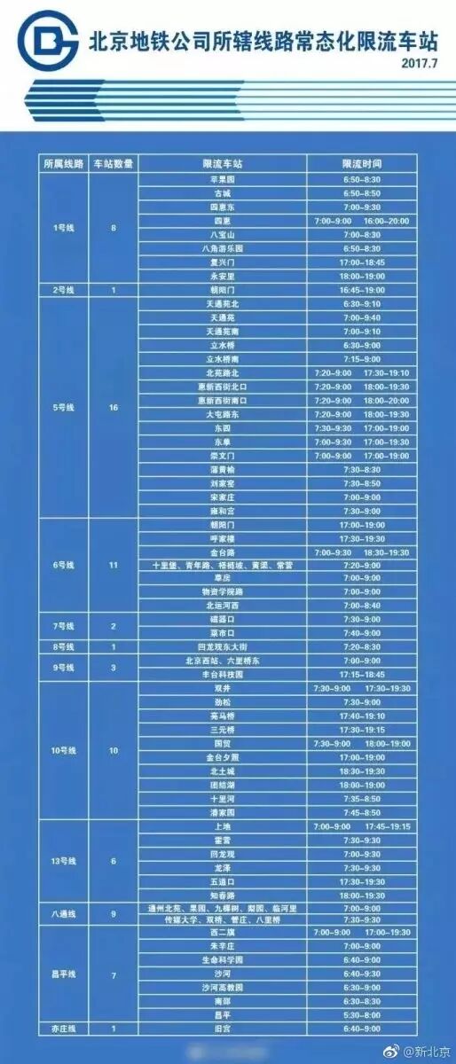 Here's a detailed chart of all the subway station restrictions (written in Chinese):