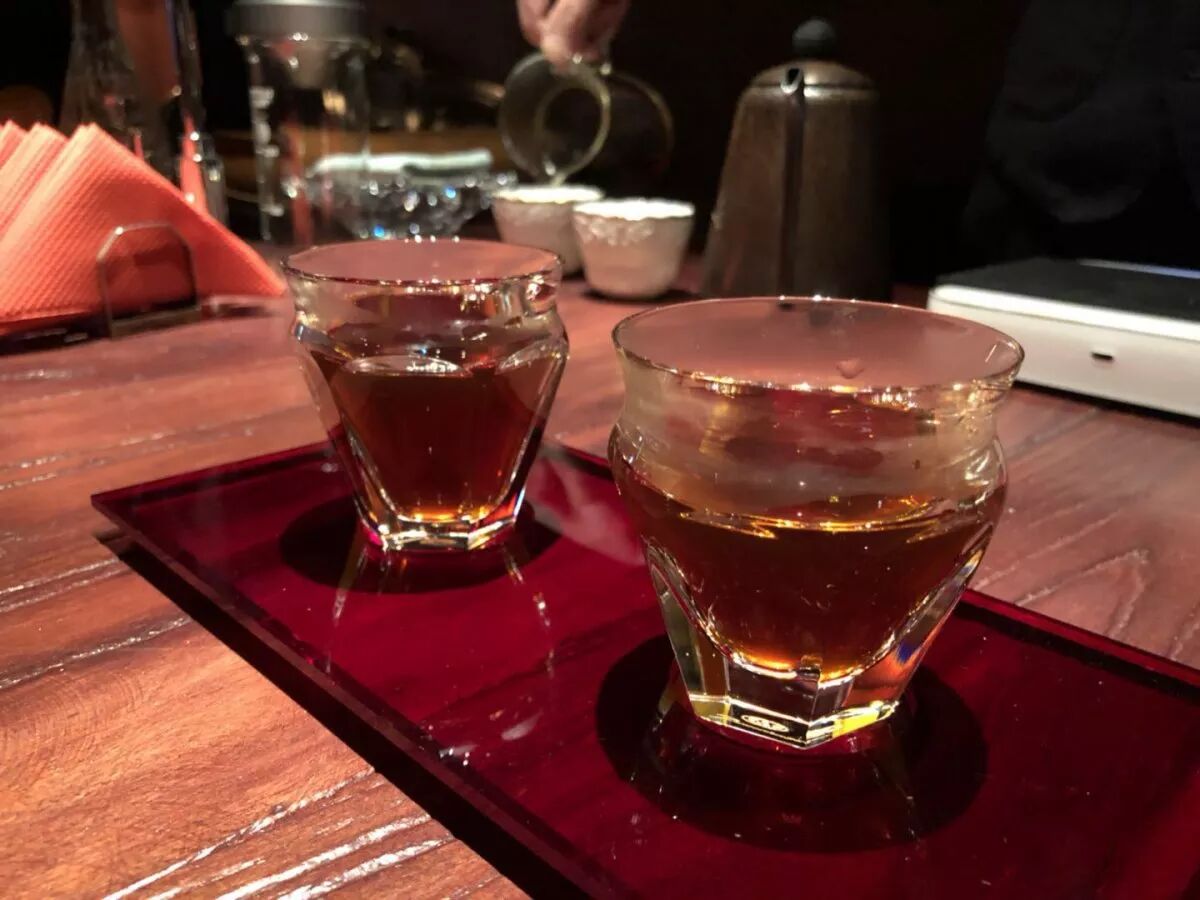 After dessert, the barista walked us through a much-needed cup of pour-over coffee using Geisha beans from Honduras. The barista weighed and ground the beans with precise professionalism, boiling the water to 92 degrees exactly and displaying a well-rounded knowledge of coffee and the exact region that the beans had been produced. The resulting coffee was mild and nutty and served with a selection of petit four, including a light-as-a-feather macaroon with subtle berry flavors, and coconut and pineapple tarts.