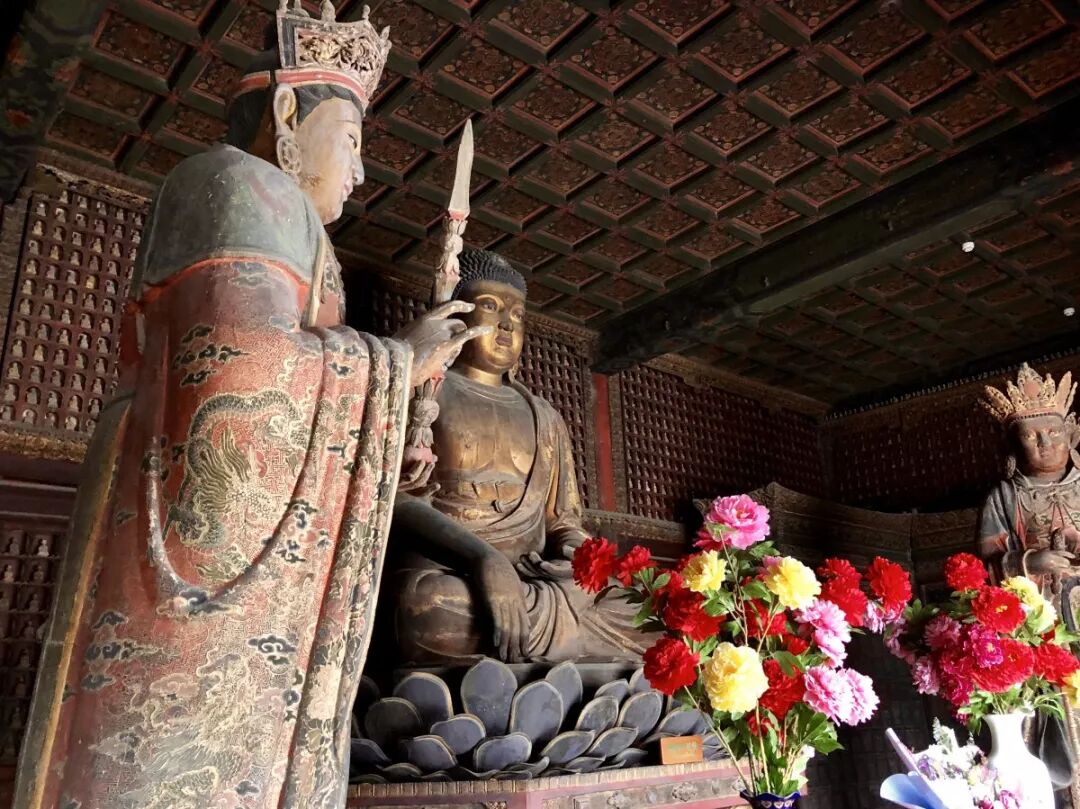 Today, the temple features some of the best-preserved architecture and artifacts from the Ming-era including original wooden beams and brackets. Even the bell in the bell tower dates from the 15th century. An excellent exhibit on the temple's construction shows photos taken in the 1930s alongside pictures of the current structures. The buildings have clearly been repainted and in some places, sagging rooftops and crumbling tiles have been repaired, but the basic structures remain more or less the same.