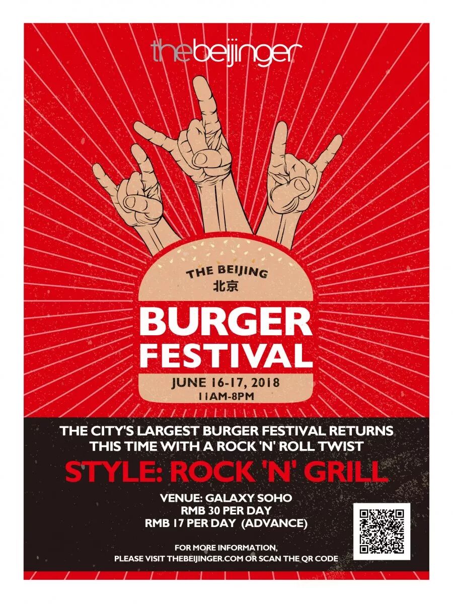 Making that advance purchase of a RMB 17 ticket couldn’t be easier – simply scan the QR code in the poster below and follow the prompts to pre-register. Buying a ticket ahead of time will ensure that you get in with good haste and ensuring the quickest possible access to the sizzling patties and drinks therein.