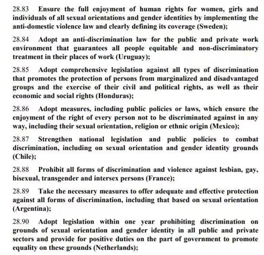 "We welcome such a positive sentiment from the government when they say they have 'already accepted' these recommendations. However, it's not true that it's already implemented,'" Peng says, adding that he is also unimpressed with the lack of specifics in officials' claims about implementing the recommendations. He adds that China should go further and "introduce anti-discrimination laws explicitly against discriminations on the ground of sexual orientation and gender identity."