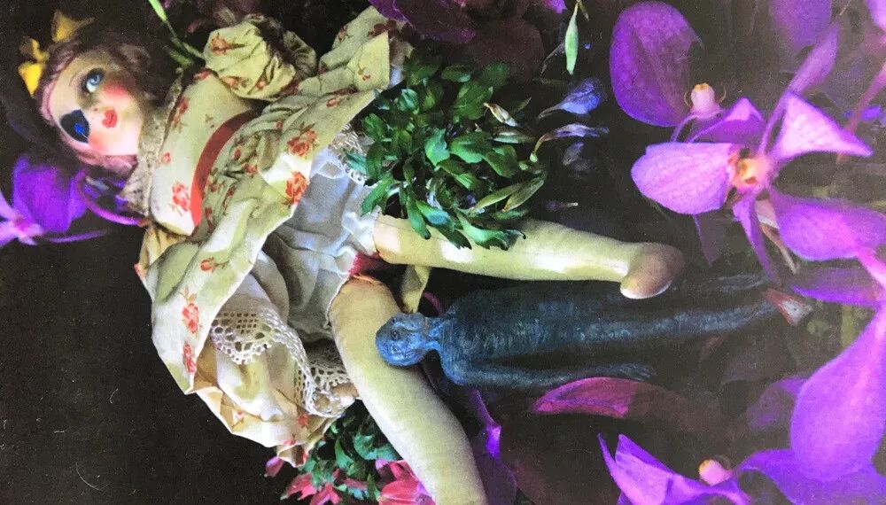 Another wonderfully bizarre prop that Araki often utilizes are dried, brittle lizards. These form a striking contrast to the lush flowers upon which they are placed and can be interpreted in so many different ways within the cruel but beautiful sphere of life. They are also a quintessential illustration of his mono no aware aesthetic, loosely defined as the wistful acknowledgment of the transience of things.