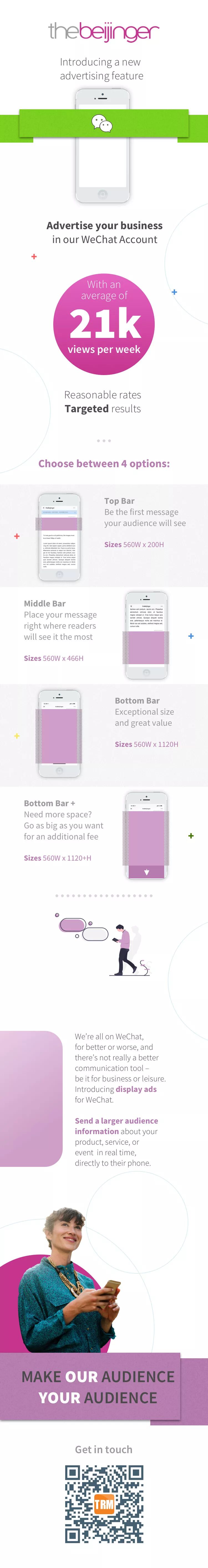 We are therefore very excited to present our range of display ads for WeChat: an awesome opportunity for you to get your product, service or event out to the largest audience possible.