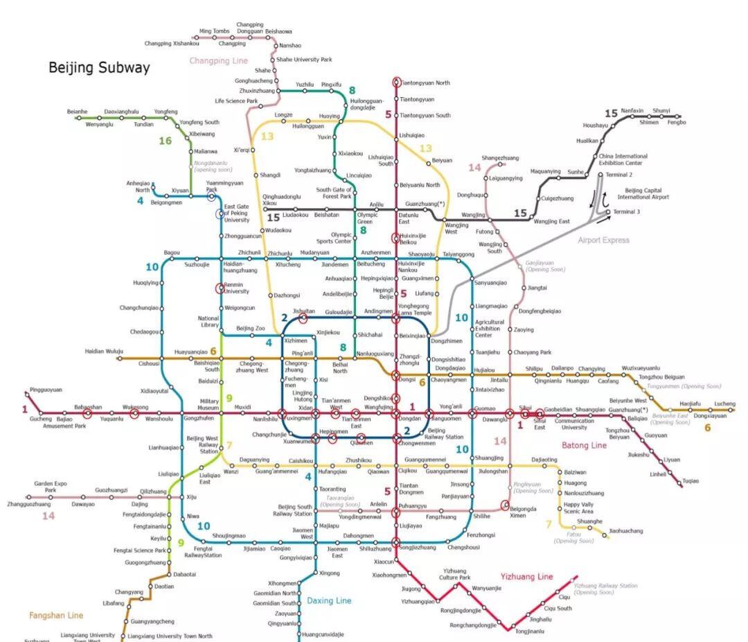 Puhuangyu 蒲黄榆 (Line 5); Beigongda Ximen 北工大西门 (Line 14) closed from 6pm until 10pm