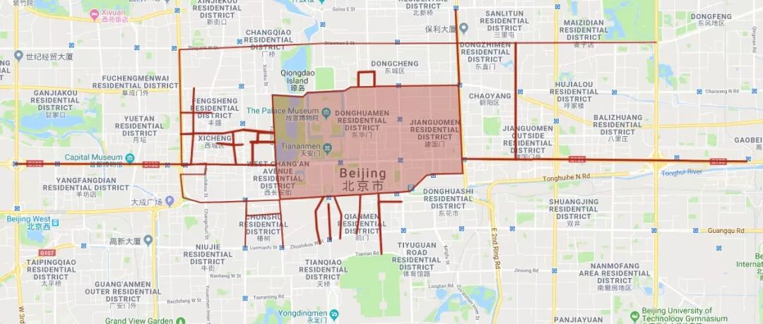 Drivers and bikers alike, take heed: if you're planning on using your car or electric scooter in Beijing this weekend, prepare for some serious detours. Just like last weekend, in preparation for the 70th Anniversary of the People's Republic of China, pretty much every major road in the center of the city and extending east to Chaoyang Park (the area roughly outlined in the image above) will be closed down to vehicles this weekend as well, in order to allow for parade drills.
