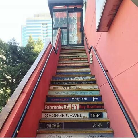 approached those wooden stairs with the names of all those great writers