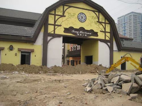 Finally, easily the strangest closure on this list is CBD's baroque and over-the-top Swiss-themed "Tonghui International Bar Street." Built in 2011, the development with it's quaint and rustic clock towers, tiled roofs, nude Renaissance portraiture, and anachronistic religious iconography will be familiar to anyone who lives in Guomao. It also, famously, never even opened and was walled off almost immediately upon completion.