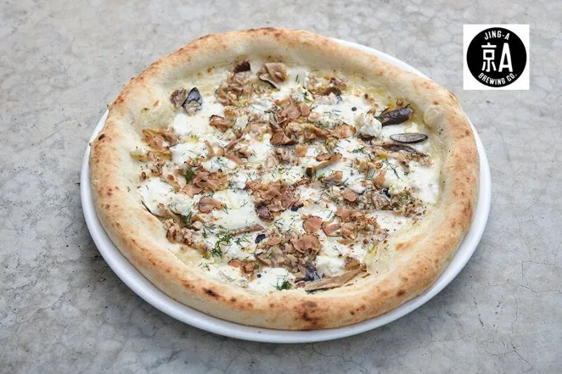When these brewmeisters put pizza on the menu at their Longfusi Taproom back in 2019, it certainly got people’s attention, especially for the bold choice to use sourdough for their pies. Left to sit overnight before cooking, the sour flavor of the dough cuts through thanks to the long fermentation time, lending Jing-A’s pizzas a nice crunchy consistency.