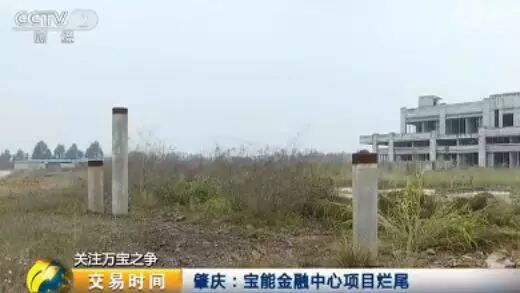 记者姚佳浩: 这里是位于肇庆市鼎湖区的宝能环球金融中心项目,这个项目规划用地达到了五百六十亩,规划总建筑面积达到一百七十万平米,这个项目从2013年的11月就已经开始动工,但是售楼处的工作人员告诉我,在2015年的年初这里已经全面停工,那么大家顺着我手指这个方向看过去,可以看到工地上只有两三栋未完工的建筑,整个工地上都堆满了废弃的建材和长满了野草。