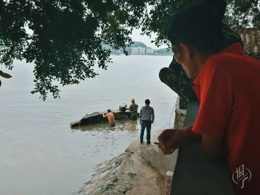 ▲相关部门下河翻起沉船查看是否有牌照丨via识广