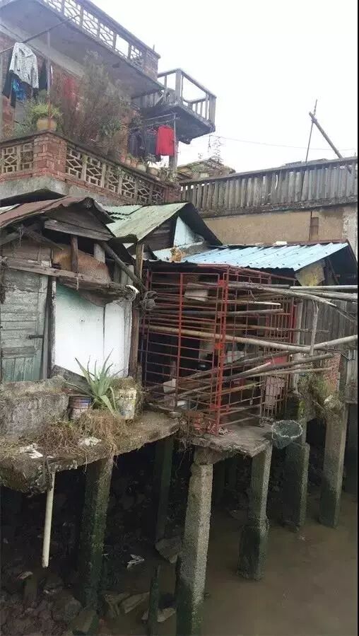 ▲岸边悬浮在半空中的吊脚楼,也是疍民上岸生活的特殊产物,在各个渔民新村里还大量存在丨via网络