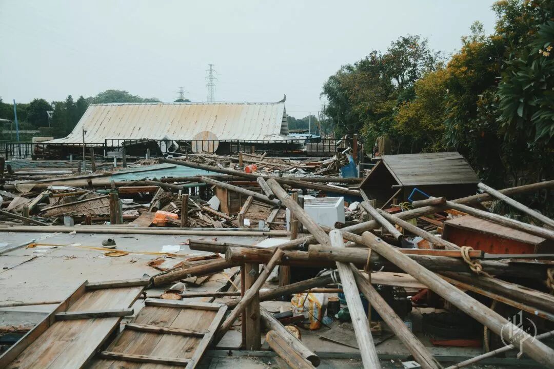 ▲吴先生正在拆除自家的水棚,希望留下日后可能有用的材料丨via识广
