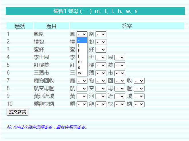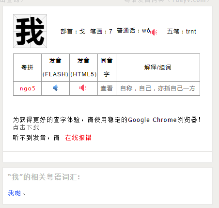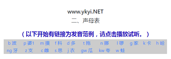 也是一个粤拼网站,这个网站内容更短小,没有太多的修饰。也是一个个拼音给你摆出来,然后自己一个个去点击学习、听录音。