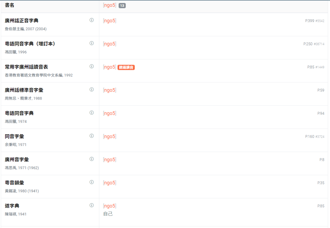 粤语审音配词字库,对于广大粤语爱好者来说,可谓人所皆知。不但字库收录十分全(13060个),包括很多生僻字。可以选择切换几种不同的拼音方案。还可以自由组合粤拼声母和韵母,同一声母或同一韵母的所有字可以一目了然。还可以听发音。美中不足的是只有词例/解释,没有例句。
