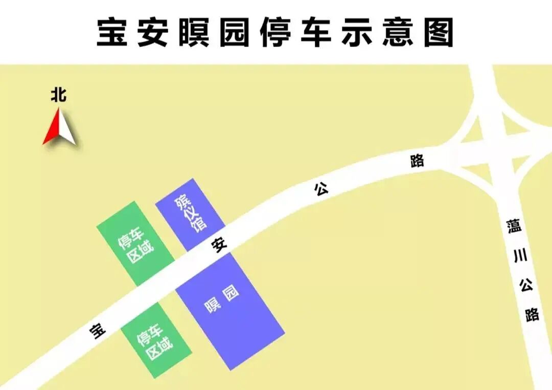 社会大客车一律从宝安安晓路口进—安晓路—伊宁路—东环路—中心广场环岛外圈东南侧(可下客)—墓园7号停车场。
