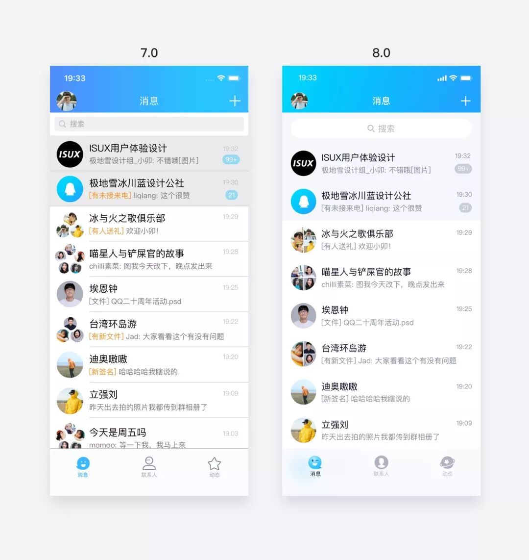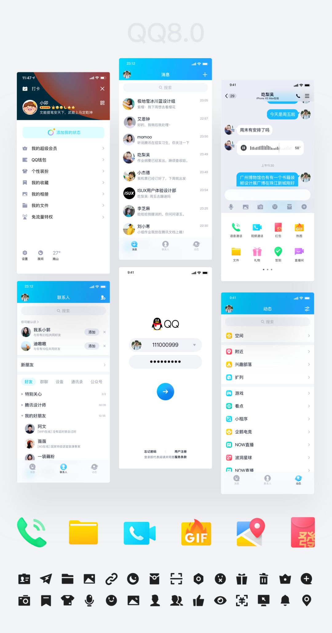 通过对图标、基础控件、色彩体系、信息框架等模块的重新设计,团队对于QQ8.0的设计理念也有了更深层次的理解,生机不只是为了刻意营造强颜欢笑的娱乐感,更希望用户在体验QQ过程所经历的行为过程中,能获得与心相映的共情感。