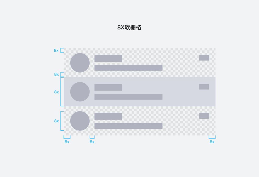 在QQ8.0的设计中,我们定义了一个单位为8px的软栅格系统:以8px为单位来规范元素的尺寸与间距。这套底层的统一单位,方便适配多种屏幕,提升精致细腻程度,保证设计一致性,降低设计师的决策成本,提高协同效率。