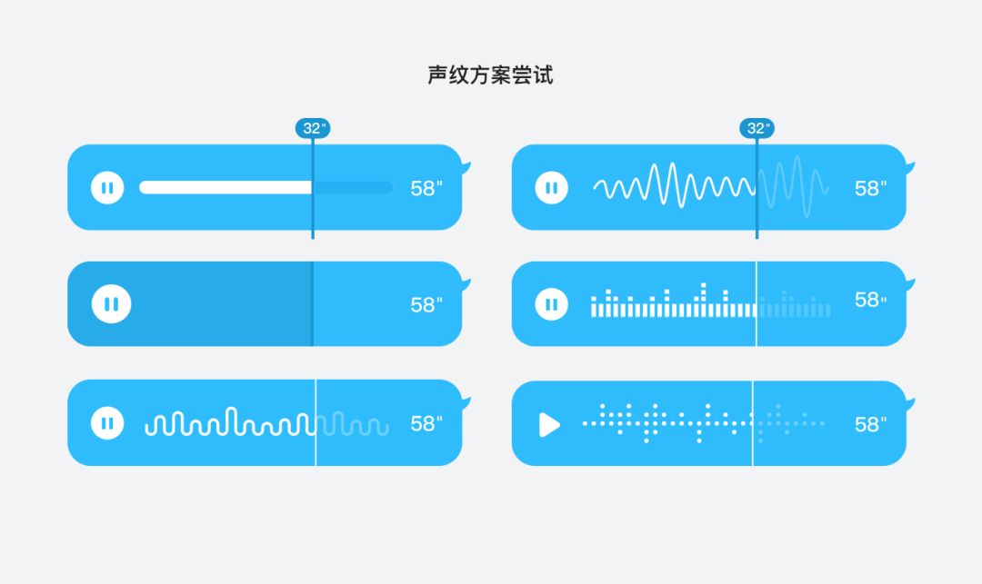 团队重新思考消息传递环节的体验,希望能通过更生动的方式透传消息所附带的情感。最接近人类本能的信息传递方式是语音消息,我们发现用户对语音暂停,进度拖拽,音频预览有强烈的诉求,为了拉开与竞品语音消息的差距,需要为声音进行可视化设计,让用户能在视觉和触控上直观感受到语音消息的生动表现。