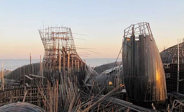 李虎还从当地造船木工身上得到启发,因为美术馆的造型特别的复杂,所以用到造船的技术,通过用木模板等小尺度线性材料手工编织出的模板定型,再用混凝土浇灌成型,并且在还在建筑内部保留了混凝土因为木板浇灌留下的不规则的肌理。希望让木工建造的痕迹可以被每一个进入美术馆的人感知和触摸。