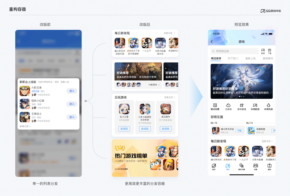 游戏中心本次改版在体验上的优化聚焦在3方面: