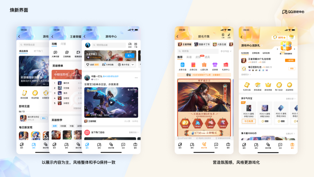 同时,以“生机”为设计理念的QQ,也进行了体验上的版本迭代,游戏中心作为QQ内的重要业务,也将跟随紧随其后完成体验的更迭,提升用户体验、延续QQ品牌基因。
