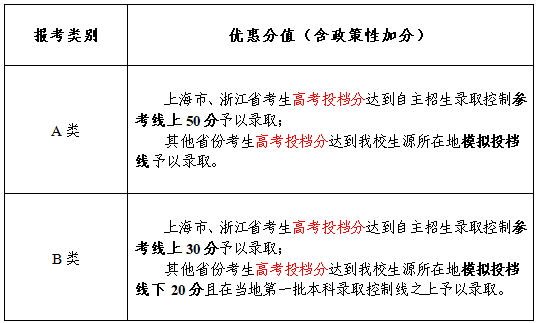 2.自主招生入围考生填报的专业(类)应与获得自主招生合格资格的专业(类)一致,按照A、B类对应优惠分值享受优惠,考生入学后不能转入其他专业学习。